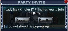 - 선택한 플레이어에겐 파티에 참여할 지 묻는 메시지가 전송됩니다.